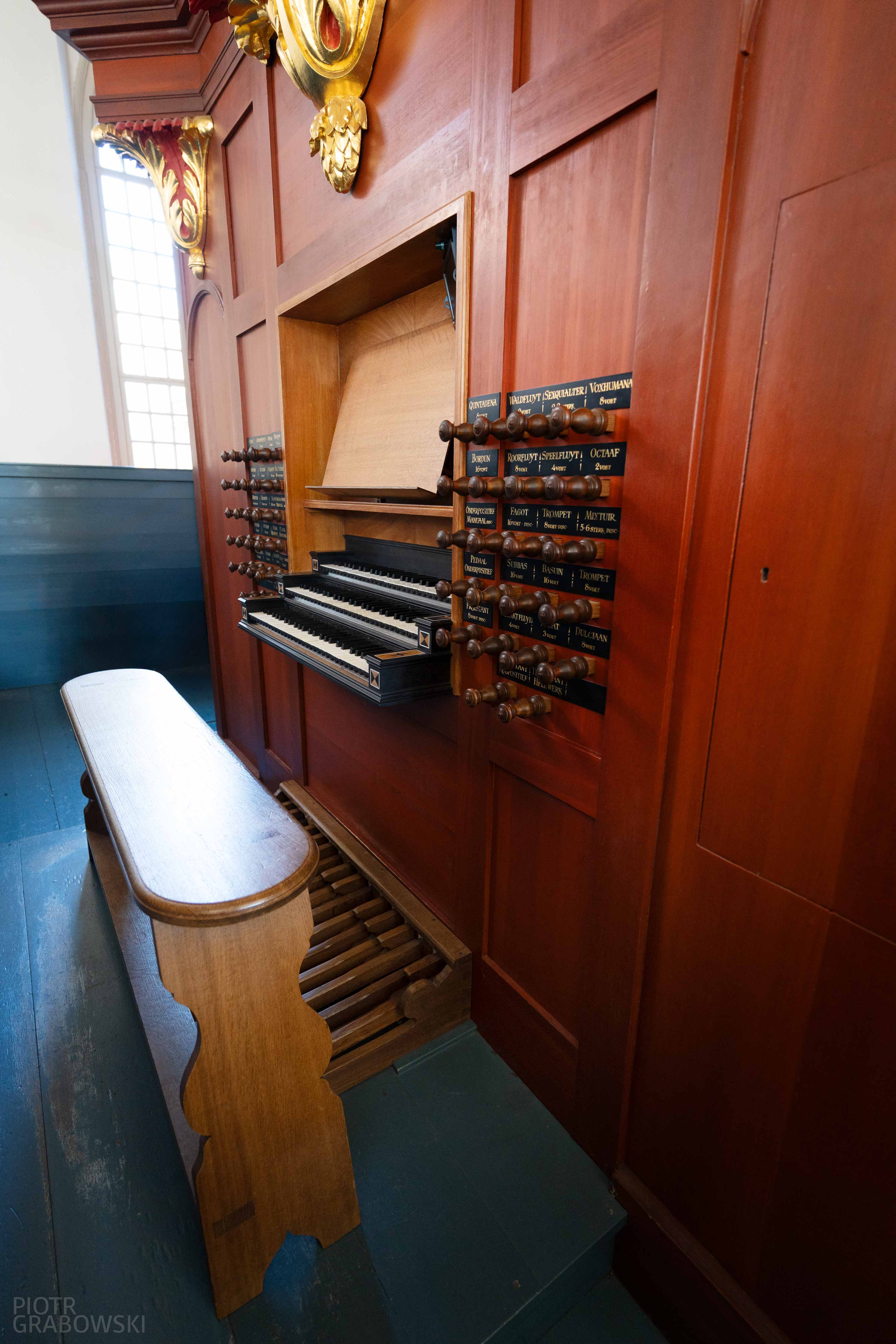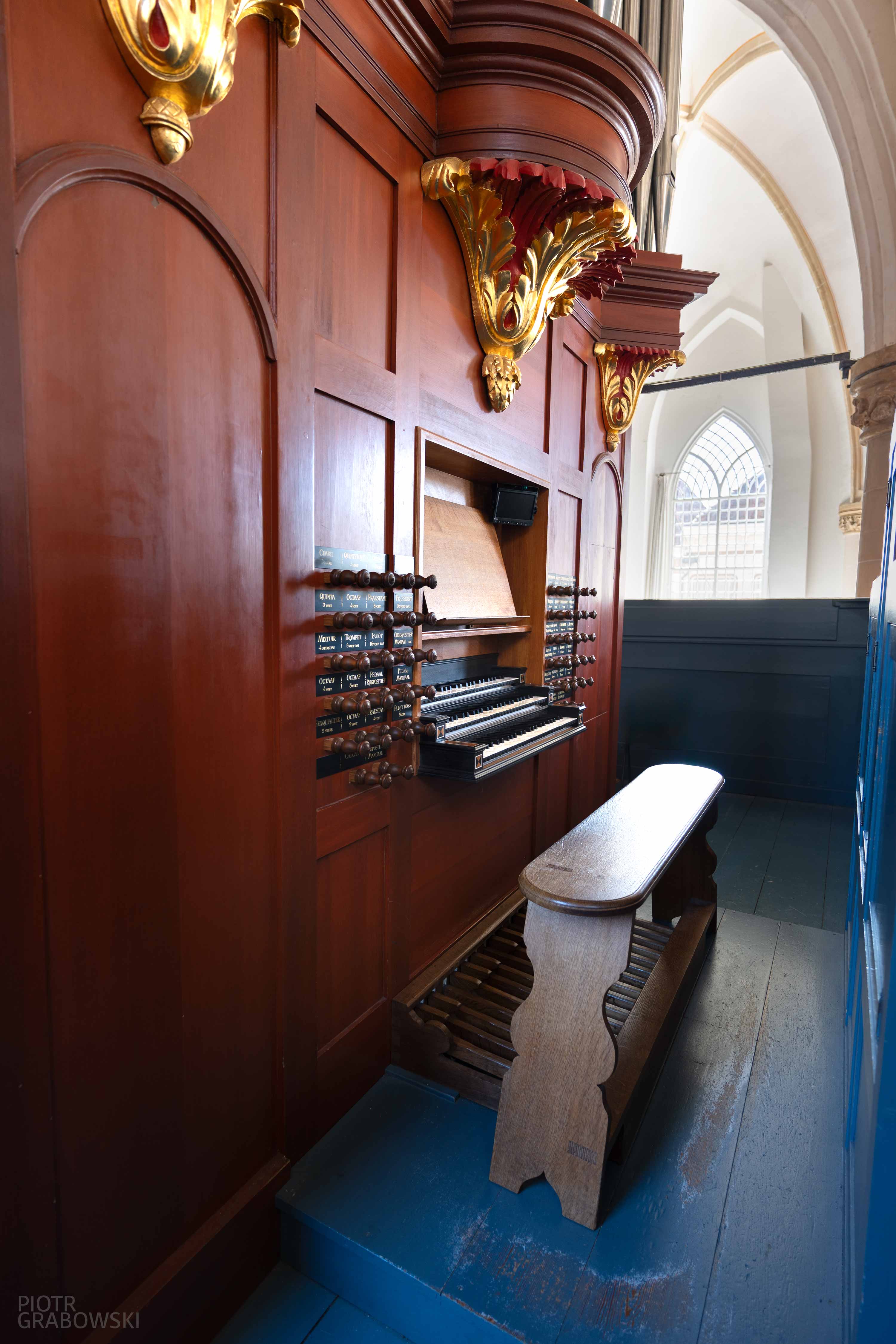 The Onderpositief division is located at the bottom of the organ, directly behind the console, on both sides of the organ case. On the sides of the case there are openwork sound openings, allowing the sound to project sideways and creating an impression of distance. This division contains the oldest pipework of the instrument.